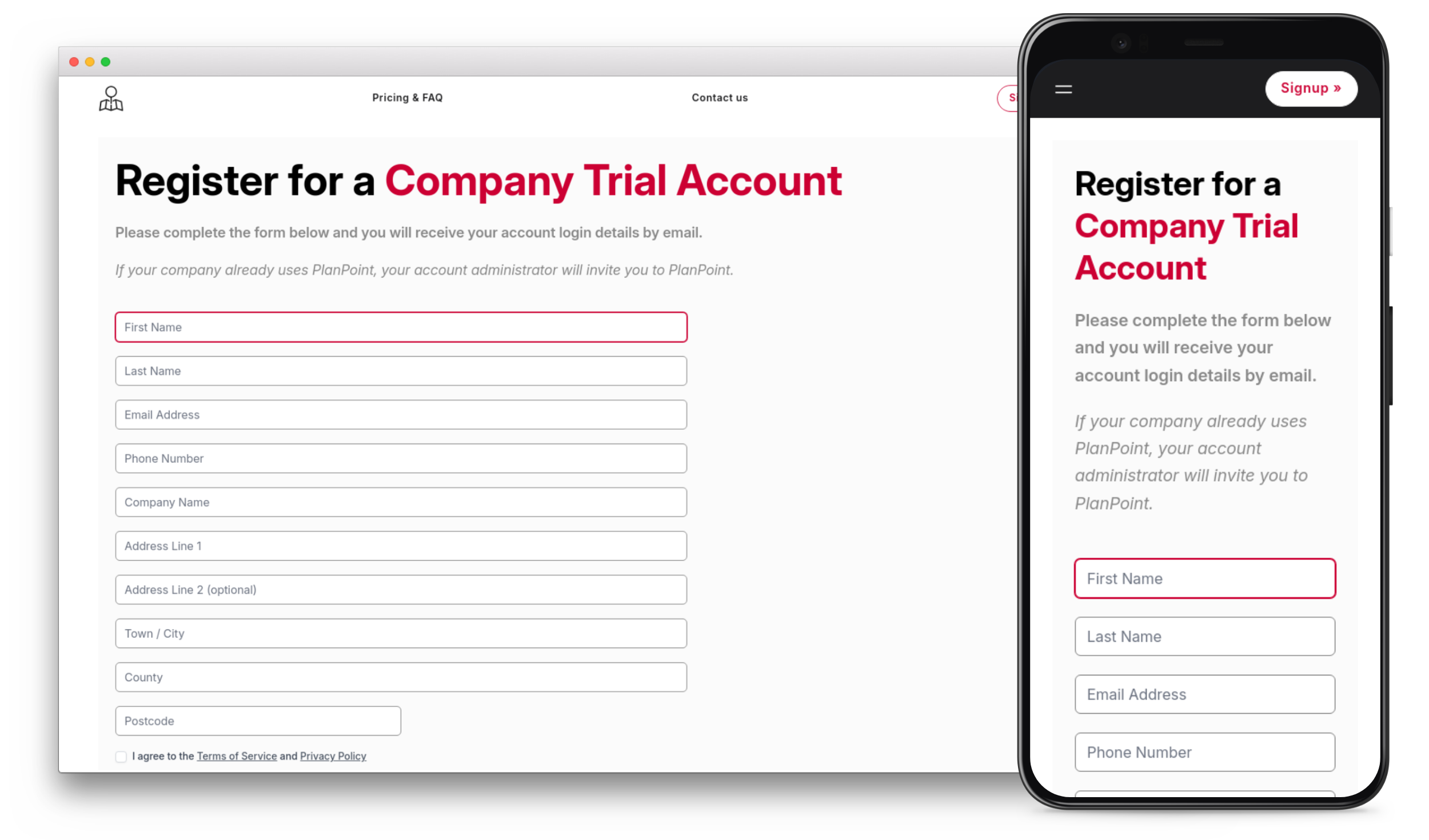 We offer a 14 Day Free subscription to trial the full PlanPoint Platform and mobile app.