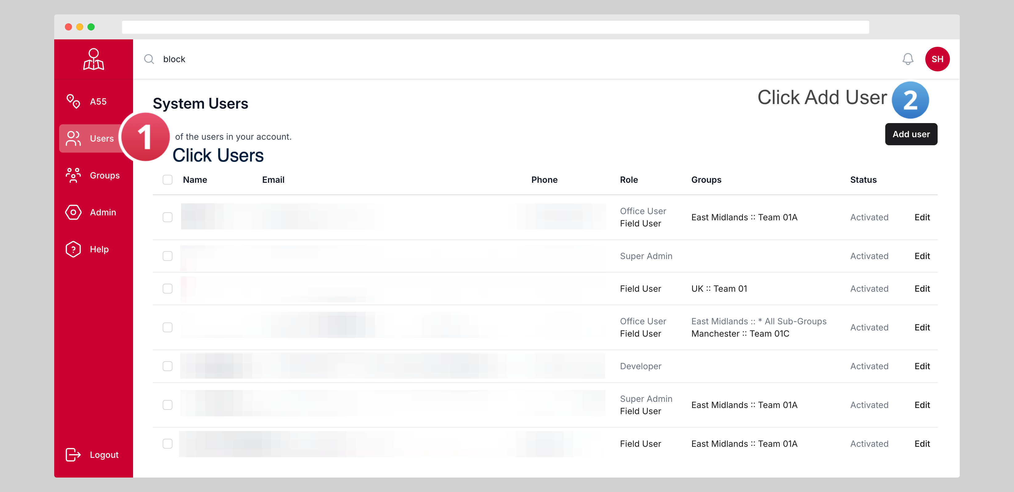 Groups and Sub-Groups are used to identify different User entities (e.g. Teams, Regions, Areas etc).