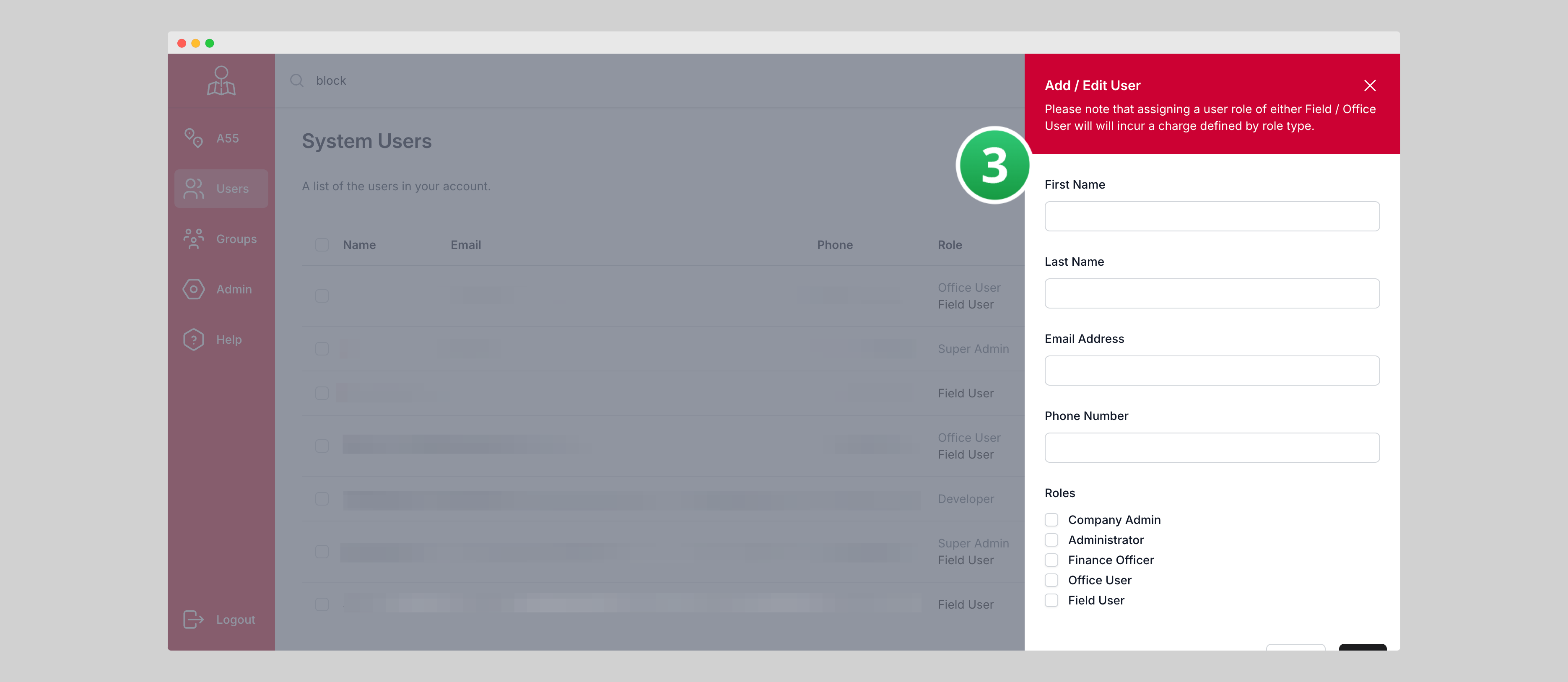 Can be assigned to multiple Groups based on which Field Users A55s/SPOs they wish to see/edit.