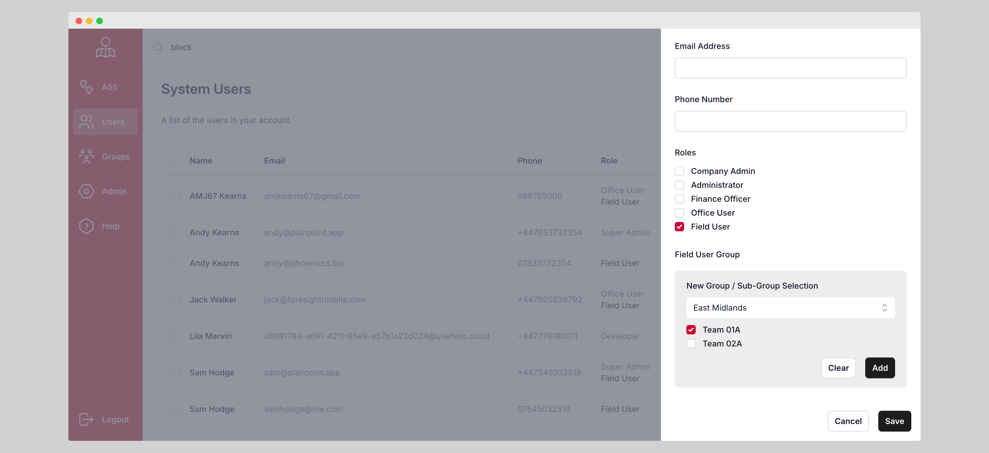 Field Users are able to have their Sub-Group changed (i.e. to be able to submit plans for different teams) but can only be assigned to 1 Group at any one time.